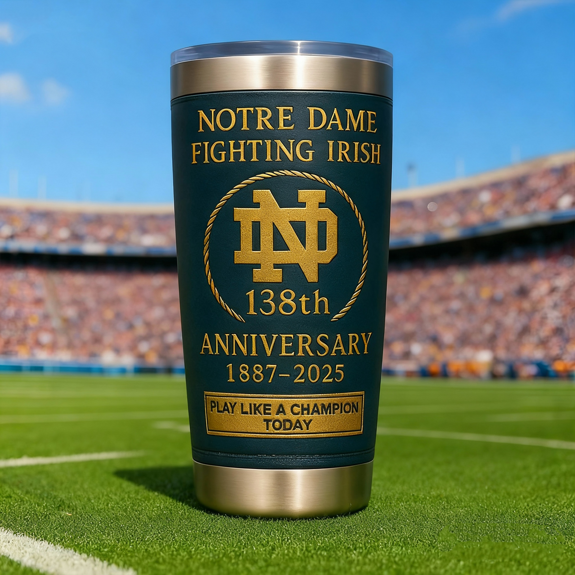 🎁Crafted to honor Notre Dame’s 138th anniversary (1887–2025), this limited tumbler celebrates the spirit, pride, and fighting heart of the Irish nation.